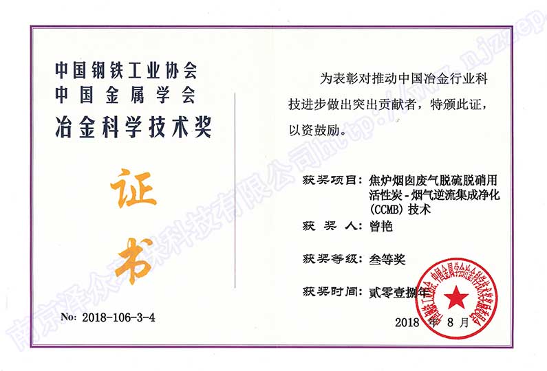 南京澤眾環保科技有限公司坐落于南京市雨花臺區,注冊資本6000萬元,2017年被認定為高新技術企業,2018年被認定為瞪羚企業,入選中國鋼鐵技術與服務供應商品牌企業,被評為鋼鐵產業鏈綠色標桿企業,與浙江工業大學合作成立聯合研發中心,入股河南安鋼澤眾冶金設計有限責任公司,牽頭起草《燒結煙氣活性焦干法脫硫、脫硝技術規范》和《焦爐煙氣聯合脫硫脫硝技術規范》。 公司專長于活性炭煙氣凈化技術,創新能力突出,成功研發具有獨立自主知識產權的活性炭-煙氣逆流集成凈化CCMB(ActivatedCarbon Countercurrent Moving Bed)技術,形成獨立自主知識產權體系,由中國金屬學會評價鑒定達到國際領先水平,獲得冶金科技三等獎,被評為“鋼鐵產業鏈綠色低碳好技術”,入選中國鋼鐵工業協會先進節能環保技術,入選生態環境部國家先進污染防治技術目錄推廣技術。